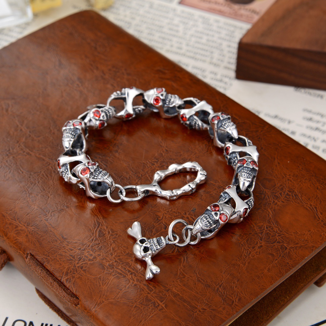 925 Silver Personalized Punk Hip Hop Men And Women Couple Dark Fashion Bracelet