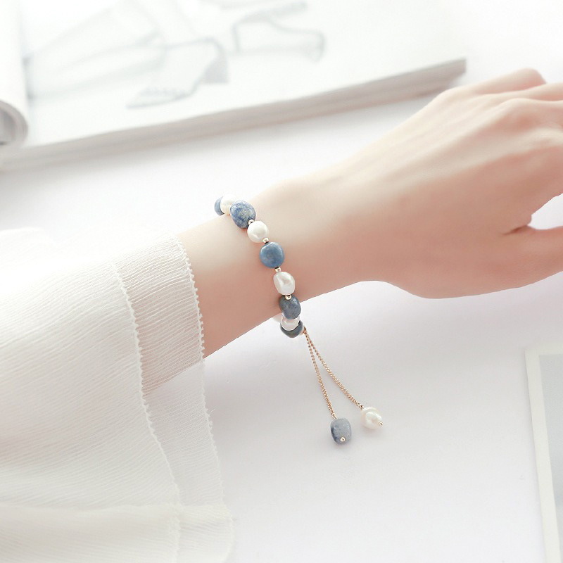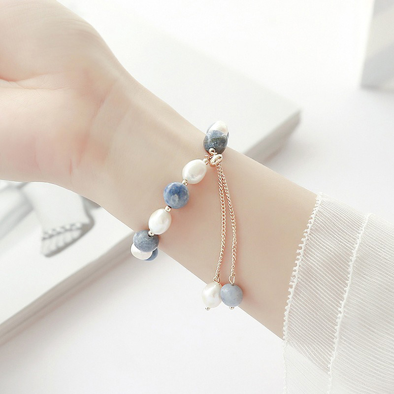 Color: blue Dongling freshwater pearl adjustable bracelet-gold (19cm)