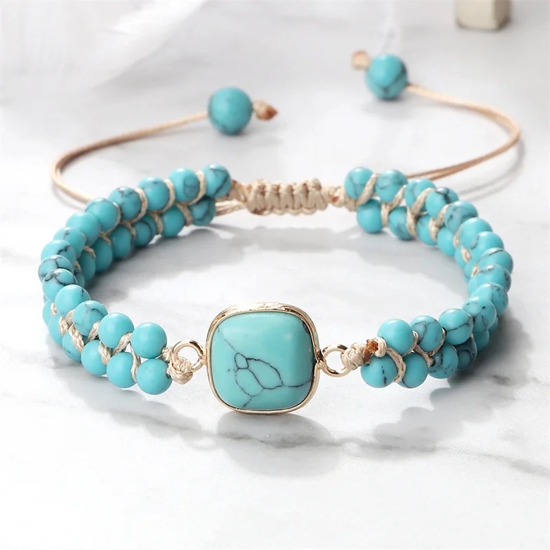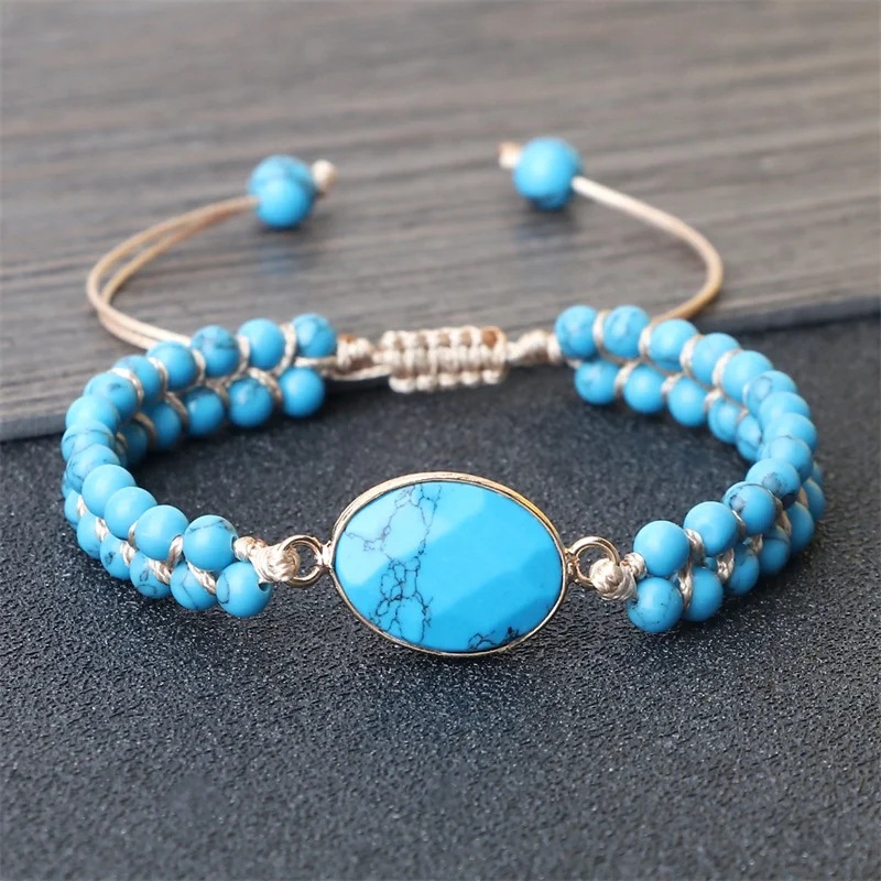 Hand-woven 4MM Natural Blue Turquoise Beads Irregular Bracelet
